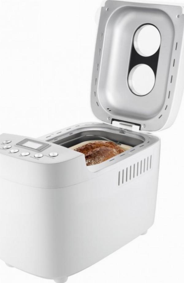 - дизайн: корпус пластик, чаша с антипригарным покрытием, ЖК-дисплей, крышка с окошком, нескользящая. ножки, съемная хлебница, лезвие с керамическим покрытием, двигатель переменного тока.