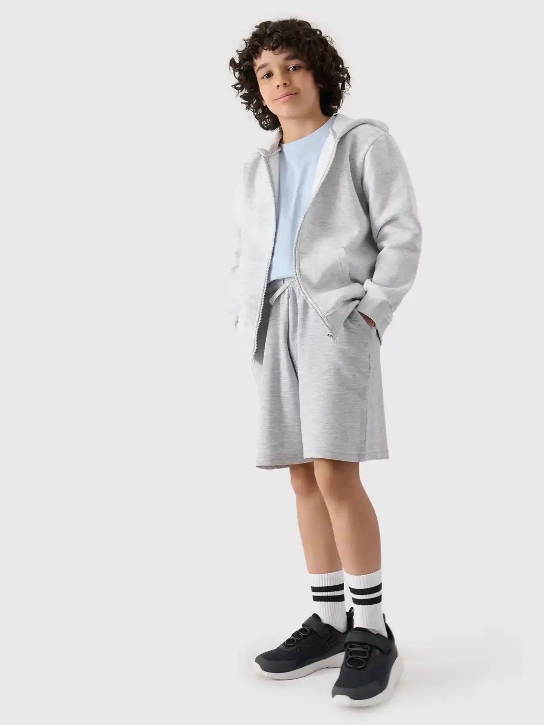 4f шорты для мальчиков - отличный выбор для активных детей, которые ценят комфорт и стиль. Изготовленные из мягкой французской ткани Терри, они сочетают в себе преимущества натурального хлопка и долговечного полиэстера, что гарантирует долговечность и комфорт ношения. Эластичная полоса на талии и дополнительная корректировка обеспечивают идеальную посадку, что делает шорты чрезвычайно удобными во время повседневных занятий. Два практических боковых кармана позволяют хранить трифли. Логотип бренда дает им современный характер, и универсальный дизайн заставляет их хорошо сочетаться с различными предметами гардероба.