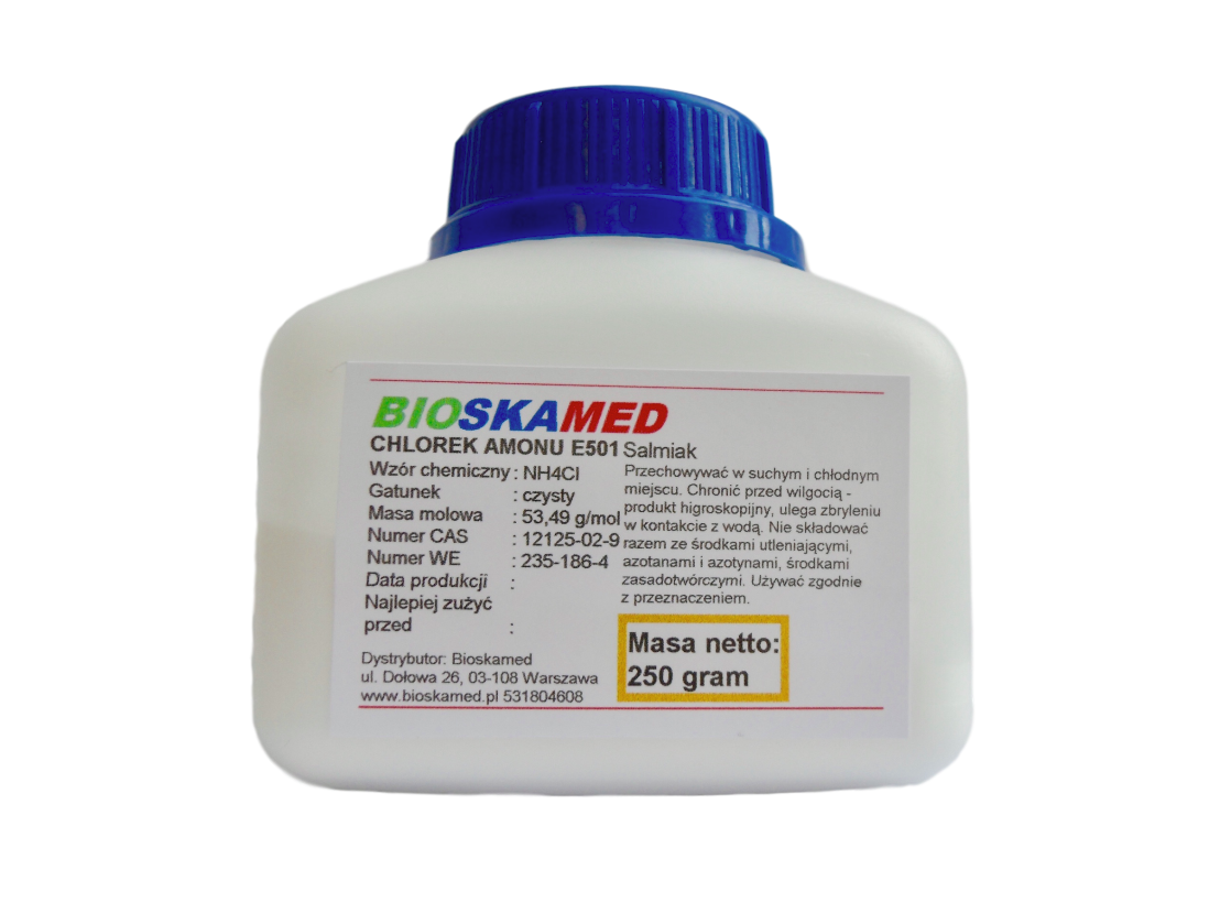 Мы предлагаем хлористый аммоний в бутылках из полиэтилена высокой плотности с герметичной крышкой по 250 грамм, 500 грамм и 1 кг.