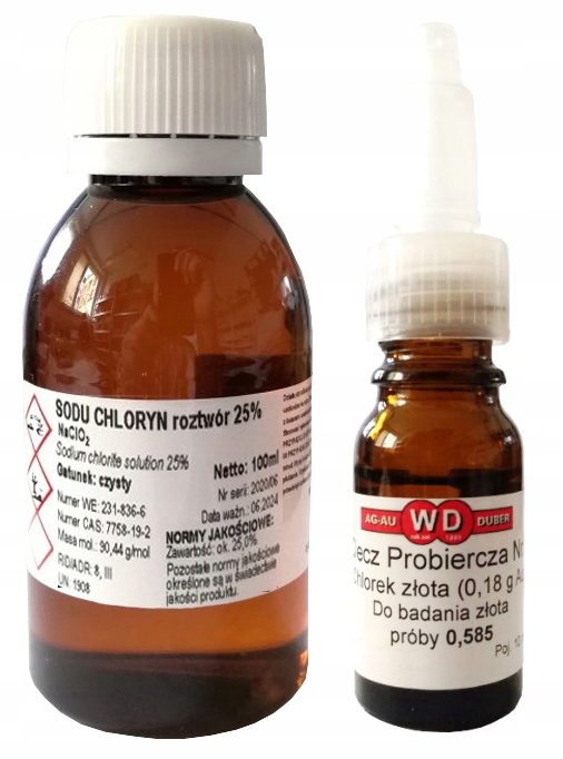 Жидкость изготовлена в соответствии со стандартом Польского комитета по стандартизации мер и качества, действующим во всех пробах. офисы. Для его изготовления использовались чистые для анализа химические соединения (о.а.), дистиллированная вода и золото пробы 0,9999. Хранится в плотной стеклянной бутылке с капельницей.