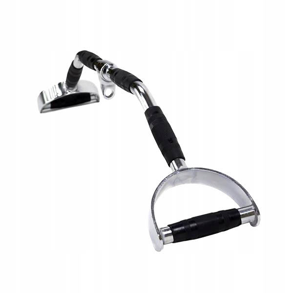 В самых широких местах ручки поставлены под углом, что при отработке тяг на верхнем блоке способствует сведению локтей к корпусу, т.е. сохранению лучшей техники упражнения. Во время тренировки рукоятка позволяет задействовать альтернативные крепления мышц, по сравнению с упражнениями с прямым хватом. Этому способствуют крайние рукоятки, установленные в нейтральный хват. Дополнительно они прорезинены, что обеспечивает надежный и удобный захват без опасения, что инструмент выскользнет из рук.