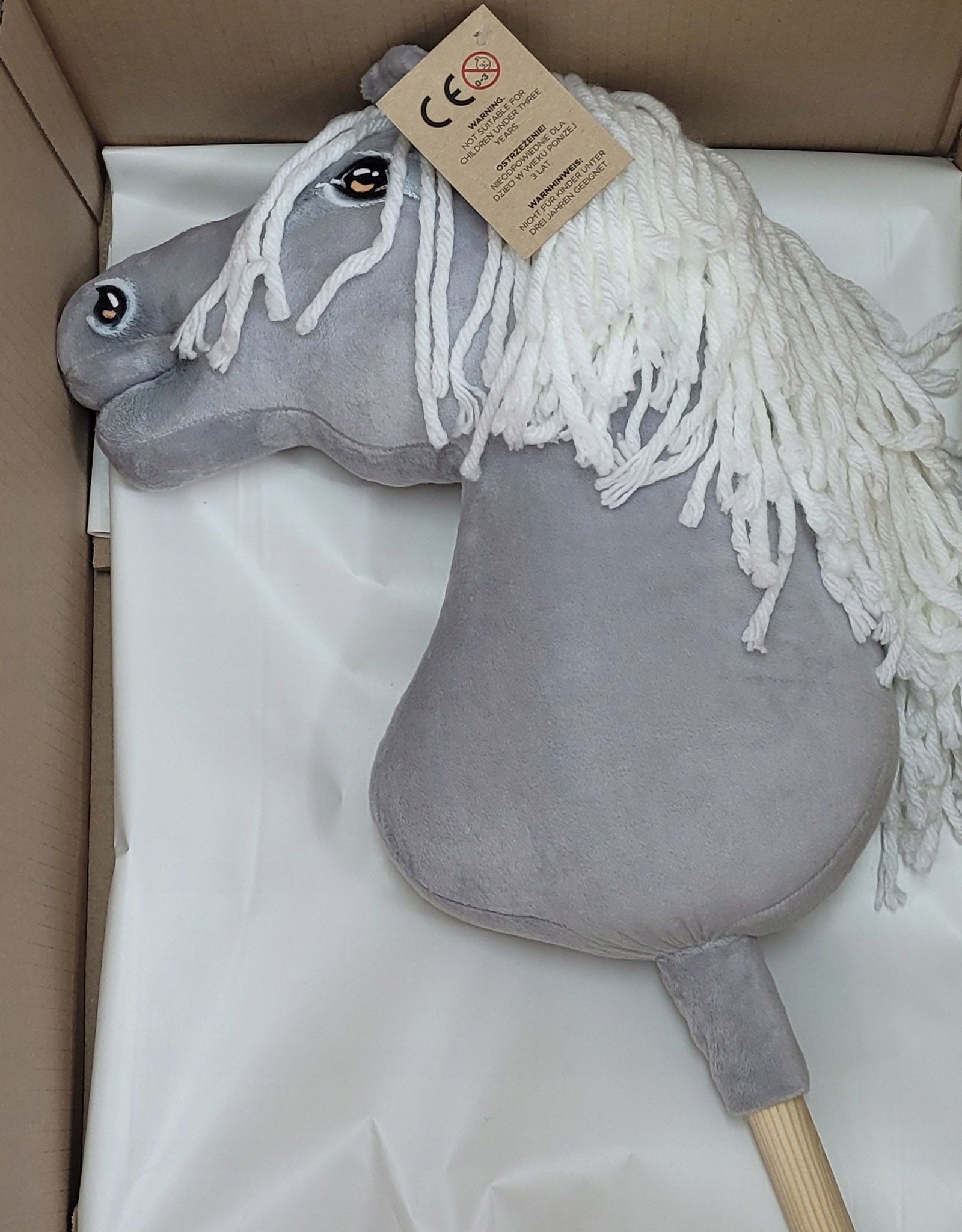 Hobby Horse Большая лошадь на Премиум палке - серая с белой гривой А3