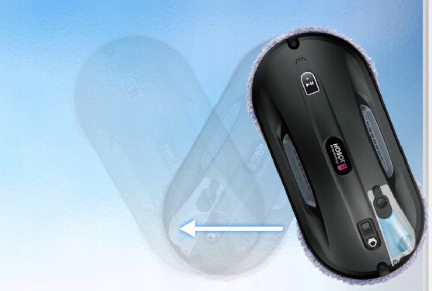 Мощный вакуумный двигатель удерживает робота на любой вертикальной или горизонтальной поверхности. Он поглощает пыль и удаляет частицы грязи. Два чистящих колеса, покрытые салфеткой из микрофибры, дополнительно удаляют грязь.
