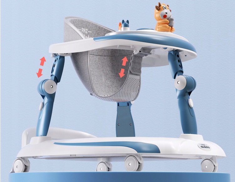 Регулировка по высоте: двойная система – трехступенчатая регулировка высоты рамы и четырехпозиционная регулировка сиденья позволяют подстроить ходунки под растущего ребенка.