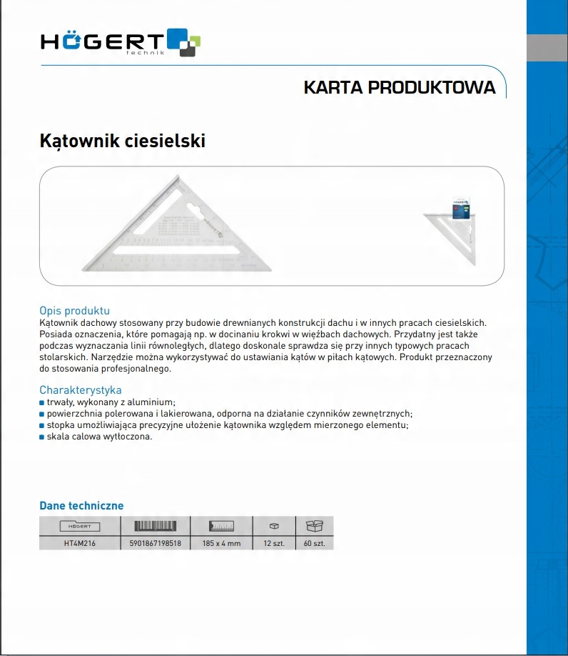 Столярный угольник от Hogert, используемый при строительстве деревянных крыш и других столярных работах. Инструменты Hogert характеризуются высокой прочностью и долговечностью.