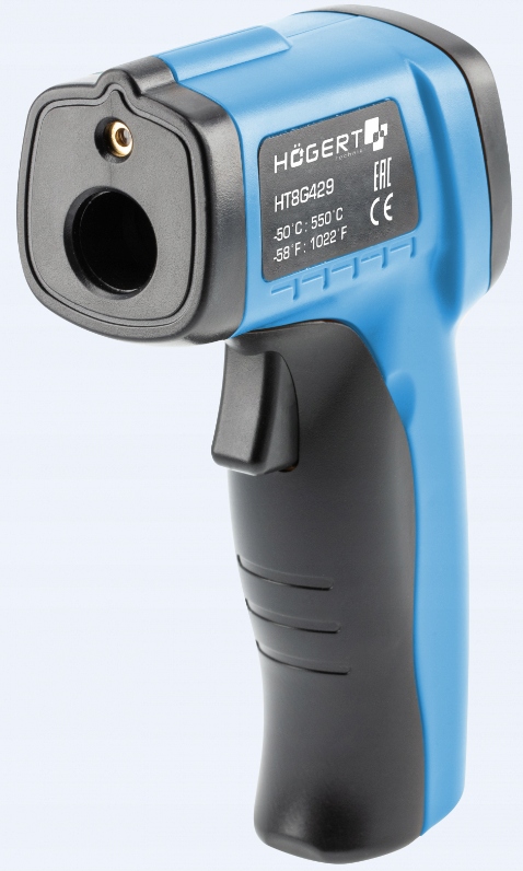 Цифровой термометр, предназначенный для бесконтактного измерения температуры объектов, находящихся вне досягаемости, на значительном расстоянии, опасных для прикосновения, труднодоступных или движущихся. В основном используется в профессиональных мастерских и автосервисах, в промышленности, строительстве и общественном питании.