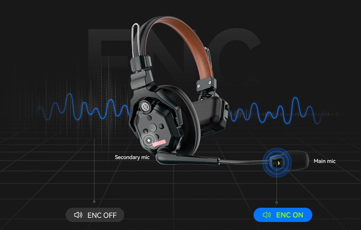 Для четкой связи в шумной обстановке включите функцию двойного микрофона ENC (экологическое шумоподавление). Алгоритм ENC сочетает в себе основной направленный микрофон во рту говорящего и дополнительный всенаправленный микрофон окружающей среды на наушнике для устранения нежелательного фонового шума и обеспечения большей разборчивости речи. Широкий частотный диапазон микрофона от 150 Гц до 7 кГц обеспечивает детальную запись голоса и повышает эффективность работы вашей команды.
