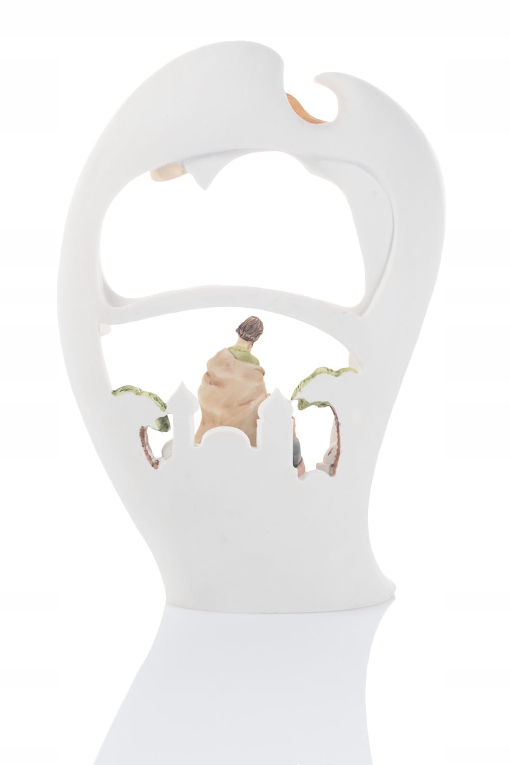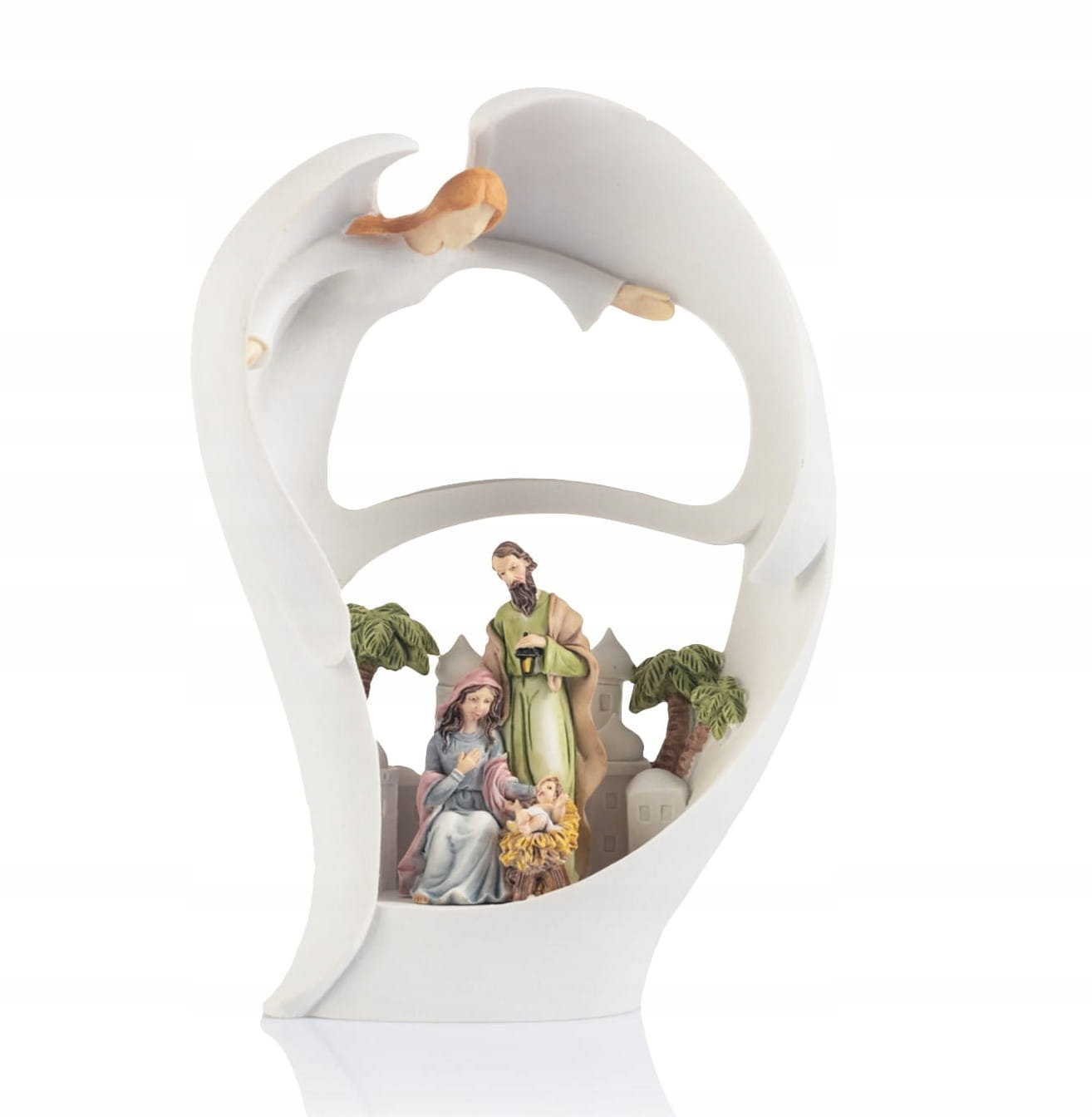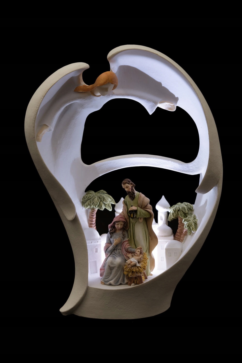 Уникальная рождественская кроватка, изображающая священное семейство, помещенное в фигуру ангела. Фигура символизирует уход за хранителем всего священного семейства.