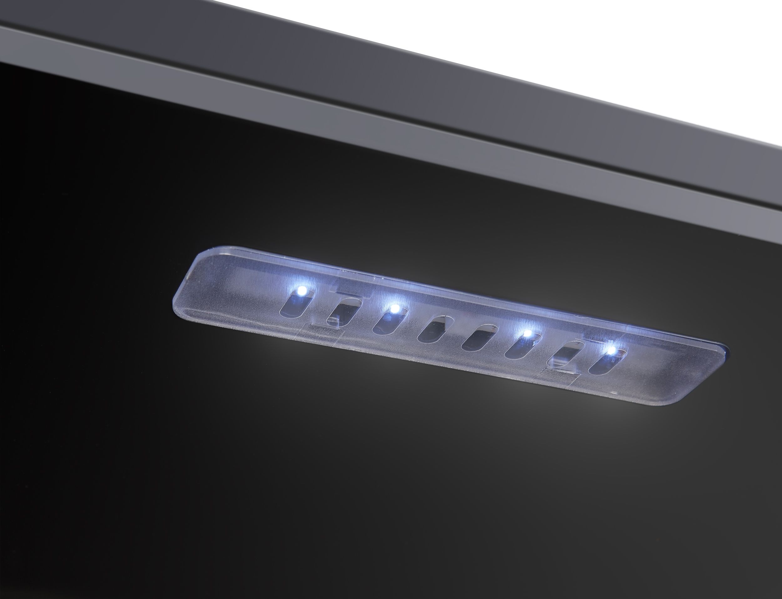 Высококачественный винный шкаф черного цвета с отключаемой синей светодиодной внутренней подсветкой выдвигает на передний план вашу коллекцию красных и белых вин.