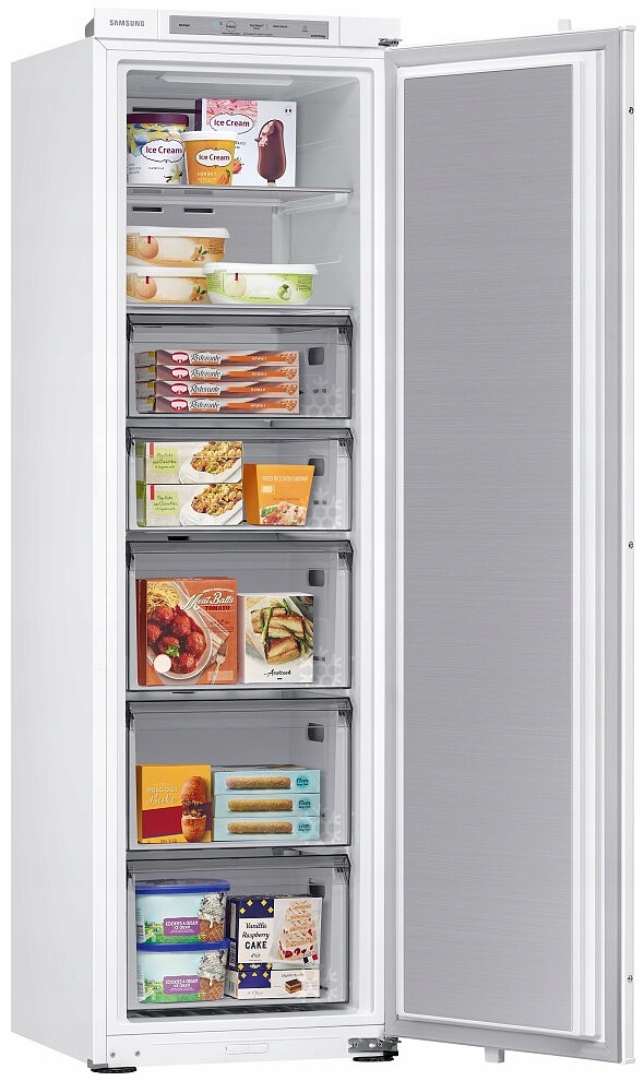 Полная технология No Frost от Samsung обеспечивает постоянную циркуляцию прохладного воздуха, обеспечивая равномерное распределение температуры внутри холодильника и систематическое удаление избыточной влаги. Благодаря этому на стенках и продуктах не скапливается лед и иней. Продукты дольше остаются свежими и питательными, а поддерживать чистоту становится проще