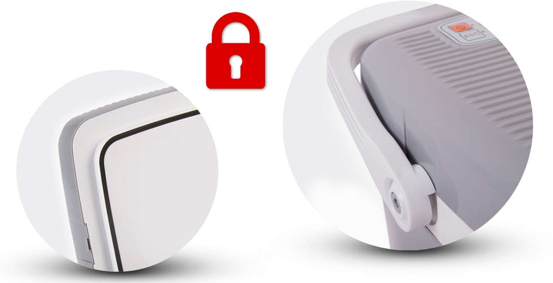 Холодильник имеет встроенную складную ручку для переноски. Ручка холодильника также выполняет функцию пряжки безопасности.