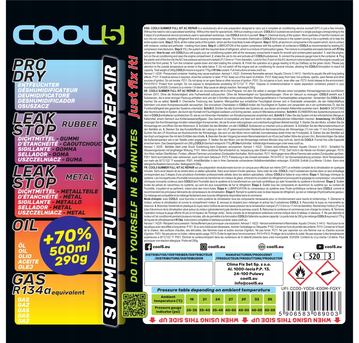 - +70% БОЛЬШЕ ФАКТОРА - большинство препаратов содержат 170 г фактора, наш COOL5 ® 5in1 — это до 290 г хладагента,