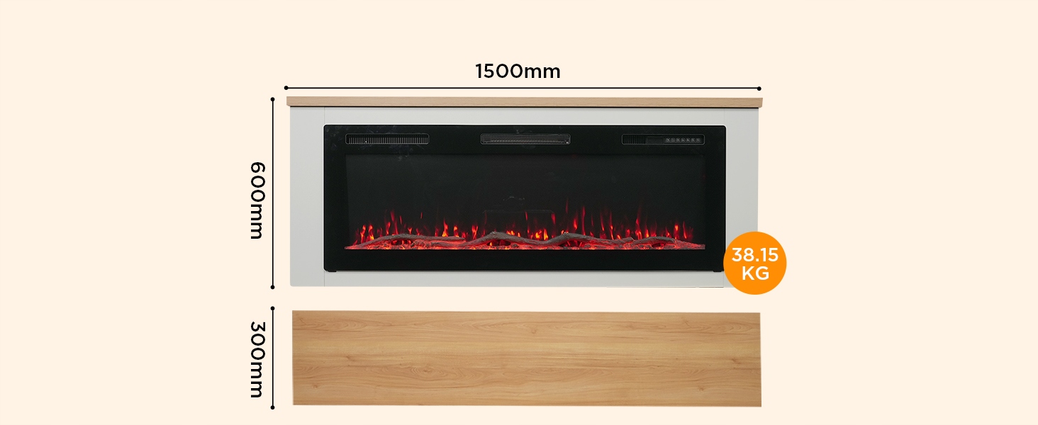 Электрокамин со шкафом, 50 дюймов, тепловая мощность 1000 Вт/2000 Вт, 12 цветов пламени, 12 цветов дров, приложение и пульт дистанционного управления