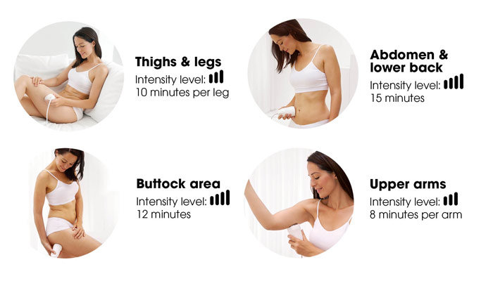 - 4 программы для зон: желудок, бедра, ягодицы, бедра, руки