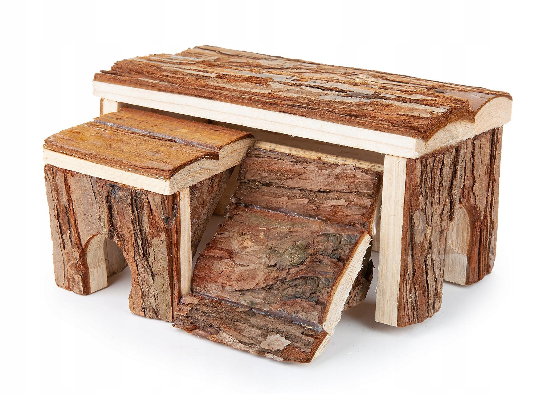 В доме животные спят, отдыхают и могут укрыться, если они обеспокоены. Эта модель была изготовлена из высококачественного естественного хвойного древесины без какой -либо химии - она не пропитана, окрашена или лака, поэтому она полностью безопасна для вашего питомца. В доме есть два входа и рампа, которую грызун может войти в крышу. Интересный дизайн побуждает животное быть активным и играть