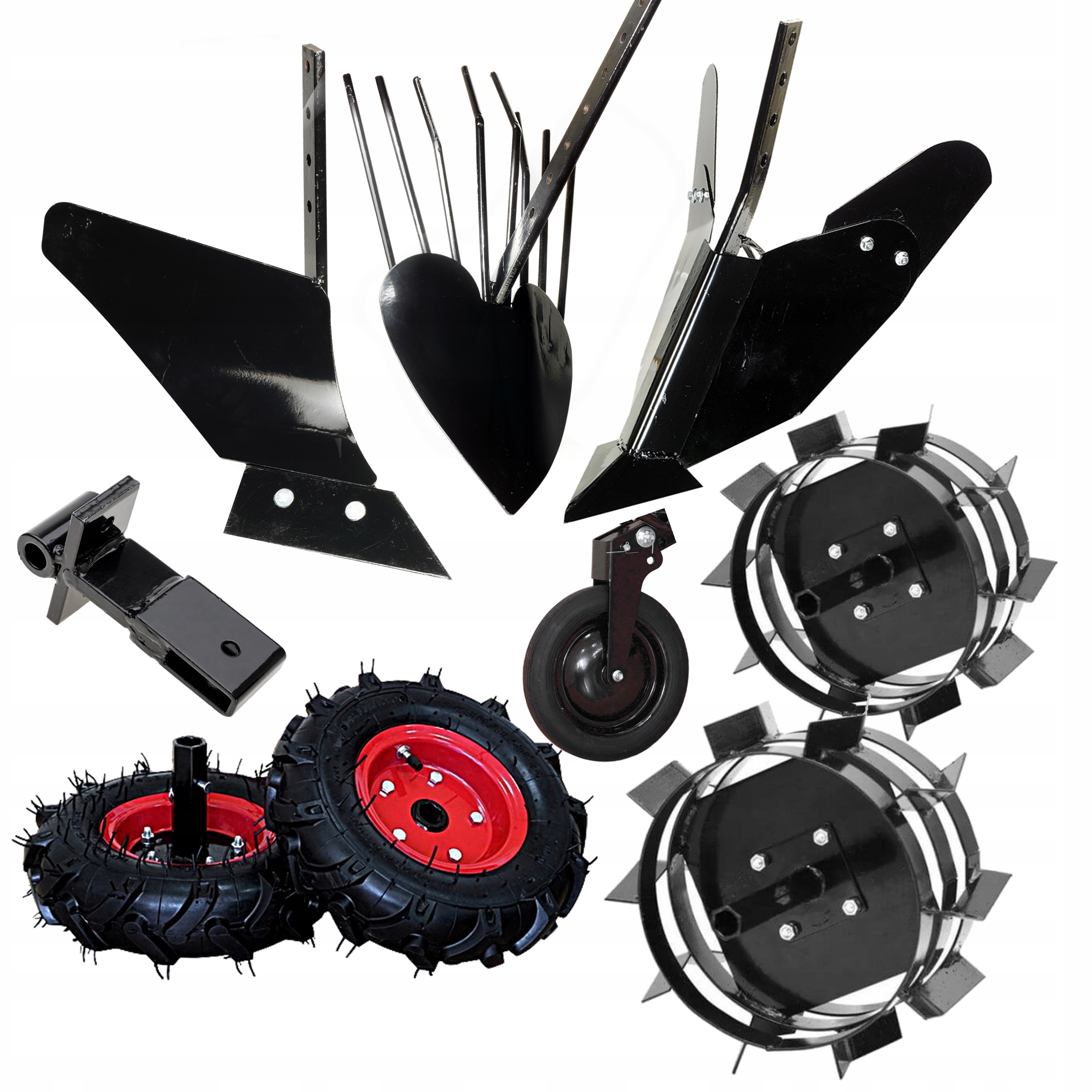 ◾В комплект гигантского входят: большой однокорпусный плуг, окучник, овощеуборщик, сцепное устройство, резиновые колеса 16", стальные колеса, транспортировочное колесо. , регулятор рабочей глубины