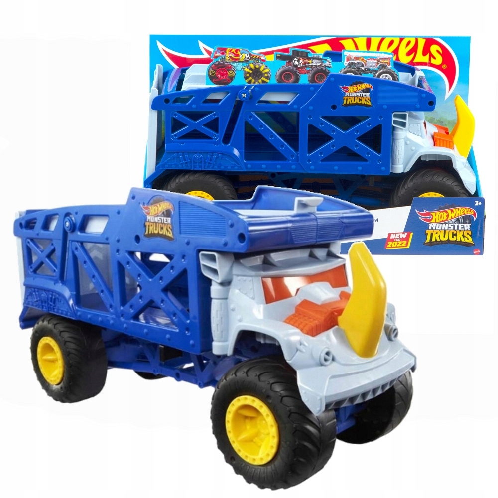 - Hot Wheels® Monster Trucks Monster Mover — это сумасшедший и увлекательный способ перевезти вашу коллекцию монстр-траков Hot Wheels® или автомобилей в самосвалах, напоминающих носорогов.