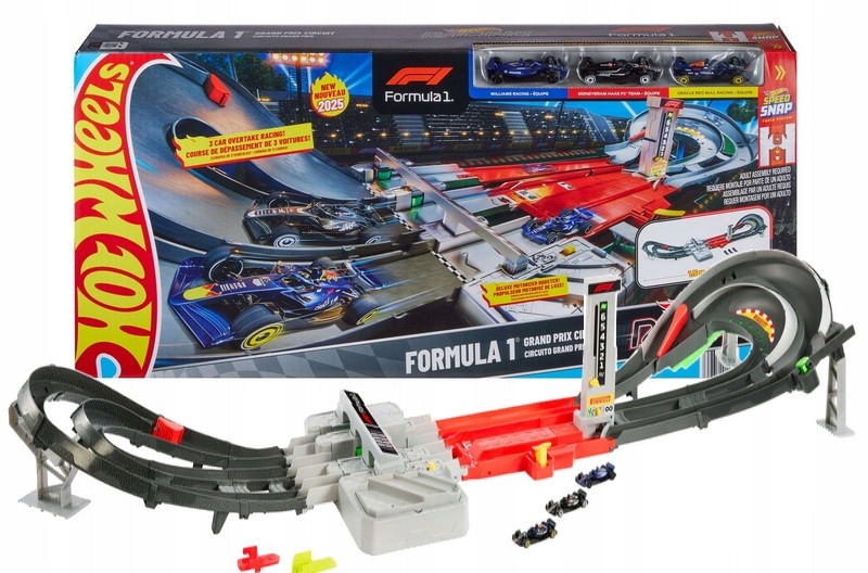Воссоздайте захватывающие гонки Формулы 1 с помощью набора треков Hot Wheels Racing Grand Prix F1.