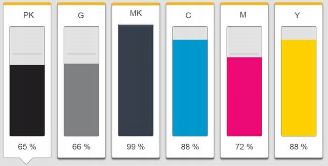 - количество картриджей печати: 6 (C, M, Y, G, PBK — краситель, MBK — пигмент)