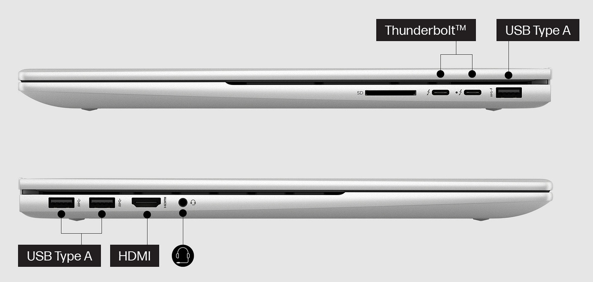 - Порты и разъемы: 2 порта Thunderbolt 4, скорость передачи данных до 40 Гбит/с (совместимость с USB4 Type-C, поддержка DisplayPort 1.4 и Power Delivery) | 3 порта SuperSpeed USB Type-A (10 Гбит/с) | вход стереомикрофона/выход на наушники (комбинированный) | цифровой разъем HDMI 2.1