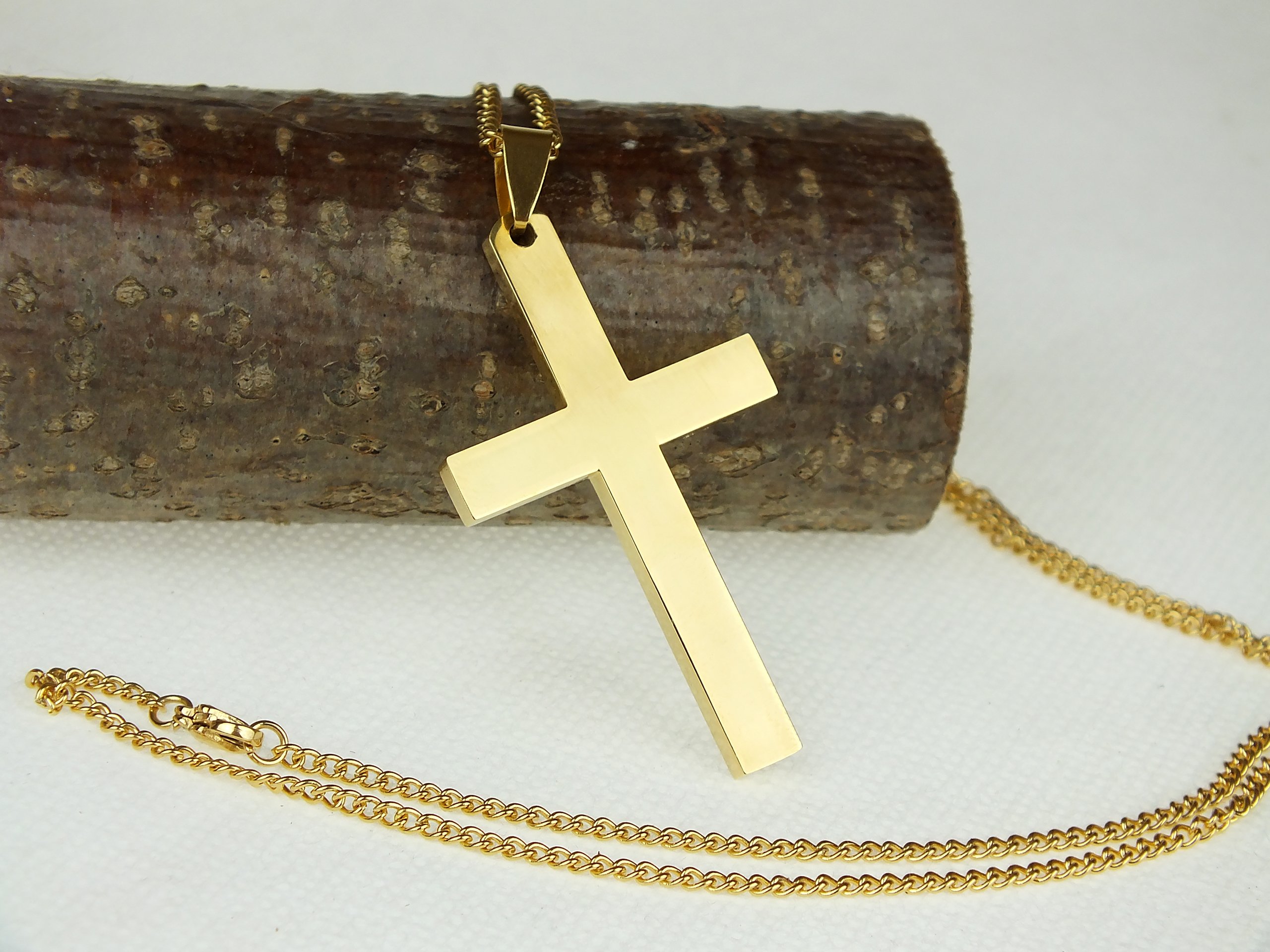 Другая сторона креста идеально гладкая и без гравированных надписей, поэтому ожерелье можно носить и без видимых надписей.