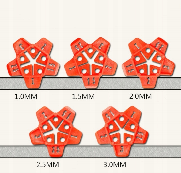 Профессиональный набор крестиков - звездочек-прокладок система точного определения размеров зазоров между плиткой, укладки плитки: плитки, кафеля и других напольных материалов TAGRED позволит вам быстро и легко получить затирка нужной толщины. Края разной ширины позволяют регулировать зазор в соответствии с вашими потребностями, а вырезы внутри звезды показывают фактическую ширину стыка.