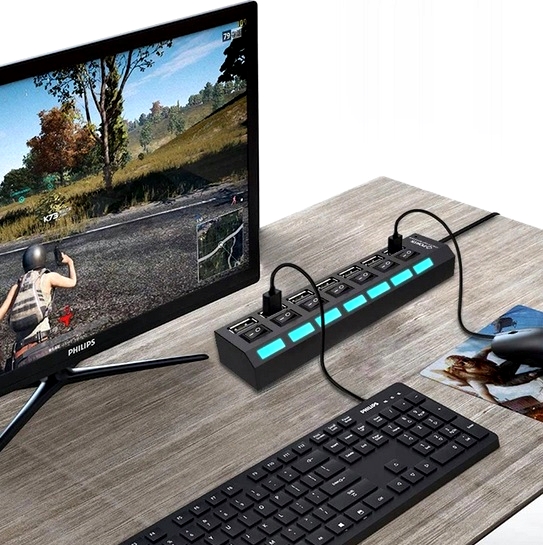 HUB High Speed — это высокоэффективный 7-портовый USB-разветвитель, подключаемый к компьютеру для увеличения количества USB-порты.