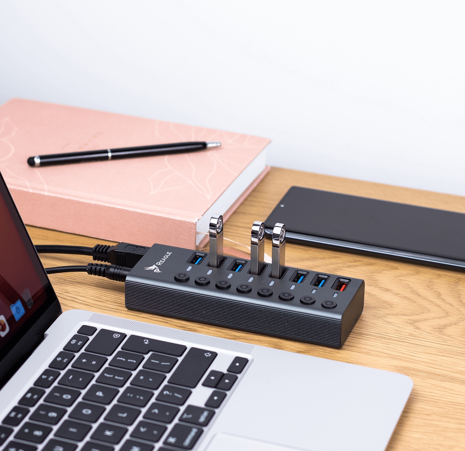 RHUB72A от бренда Reagle — это активный концентратор USB-A 3.2 Gen 1 с возможностью зарядки.