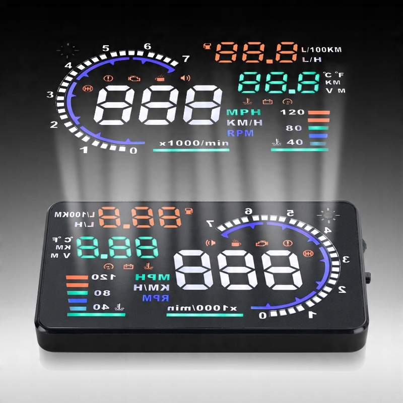 HUD A8 — отличное устройство, которое значительно повышает безопасность путешествий. Вам не придется отрывать взгляд от дороги, чтобы узнать, с какой скоростью вы сейчас едете или температура воды подходит.