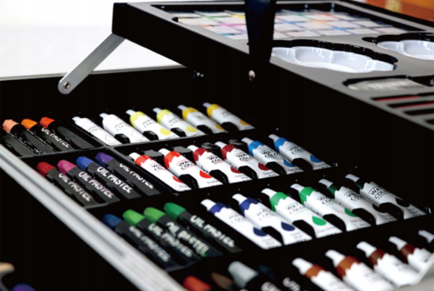 Художественный набор является предложением не только для детей b>. богатая цветовая палитра и различные виды аксессуаров будут работать во время набросков, раскраски и многих других работ. Разбуди художника и выражайте себя через цвет!