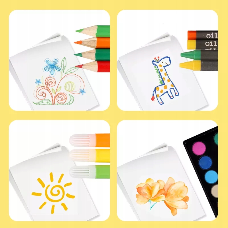 Большой набор для рисования и рисования — отличная вещь для начала творческого приключения как для любителей, так и для более опытных художников. Набор функциональный и состоит из 168 полезных приборов и практичного чемоданчика. Большое количество элементов даст возможность практического использования и позволит реализовать различные творческие идеи. Используя огромный выбор из 24 мелков, 24 маркеров, 48 масляных пастелей, 48 свечных пастелей, 12 акварельных красок, точилки, клея, консилера, ластика и листов бумаги формата А4, мы с легкостью создадим самые изысканные, креативные и оригинальные работы. b>Посуда имеет широкую и привлекательную цветовую гамму.