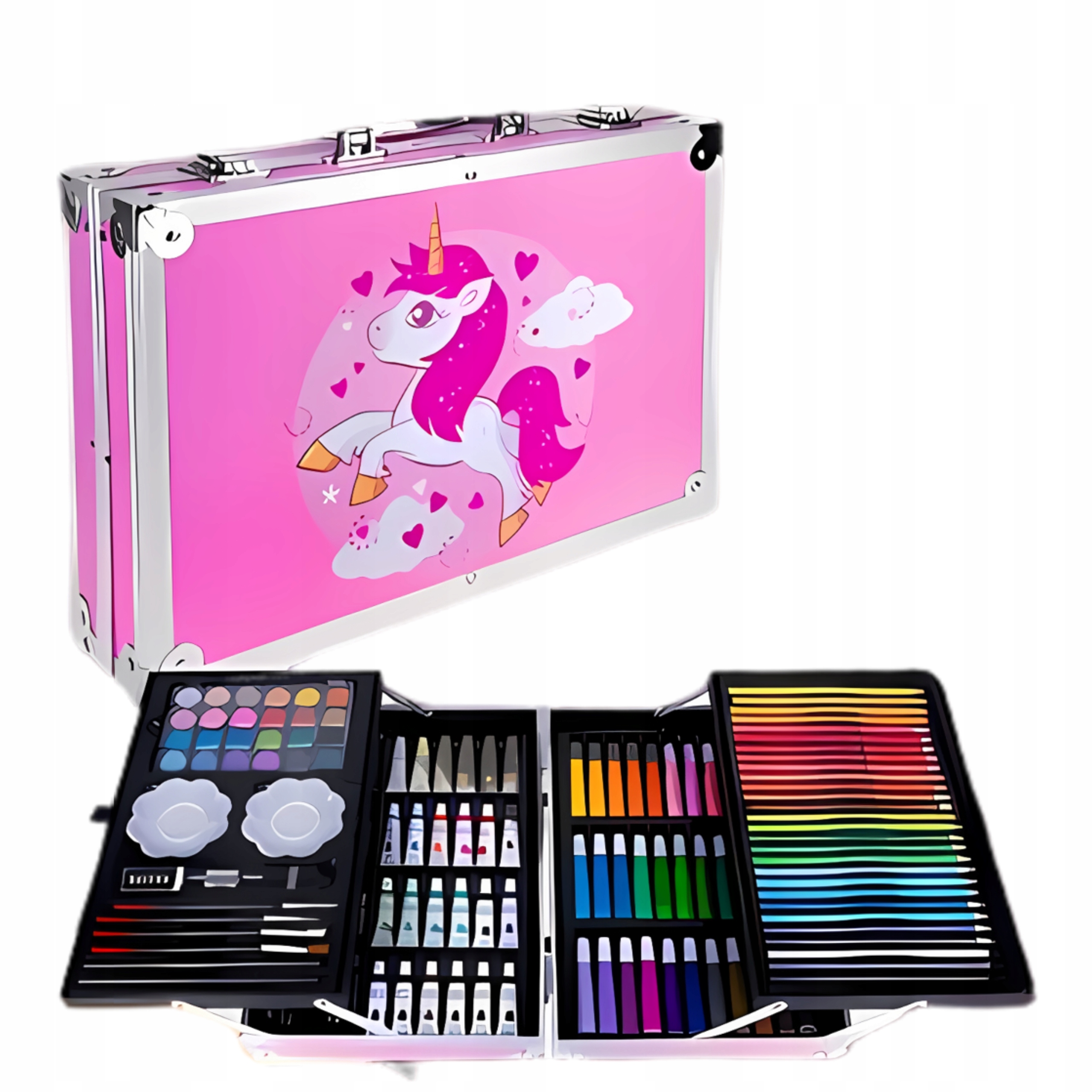 Набор для рисования в чемодане станет прекрасным подарком каждому маленькому художнику, а широкий выбор цветов мелков, красок и фломастеров доставит долгие часы удовольствия и позволит развить творческое воображение.