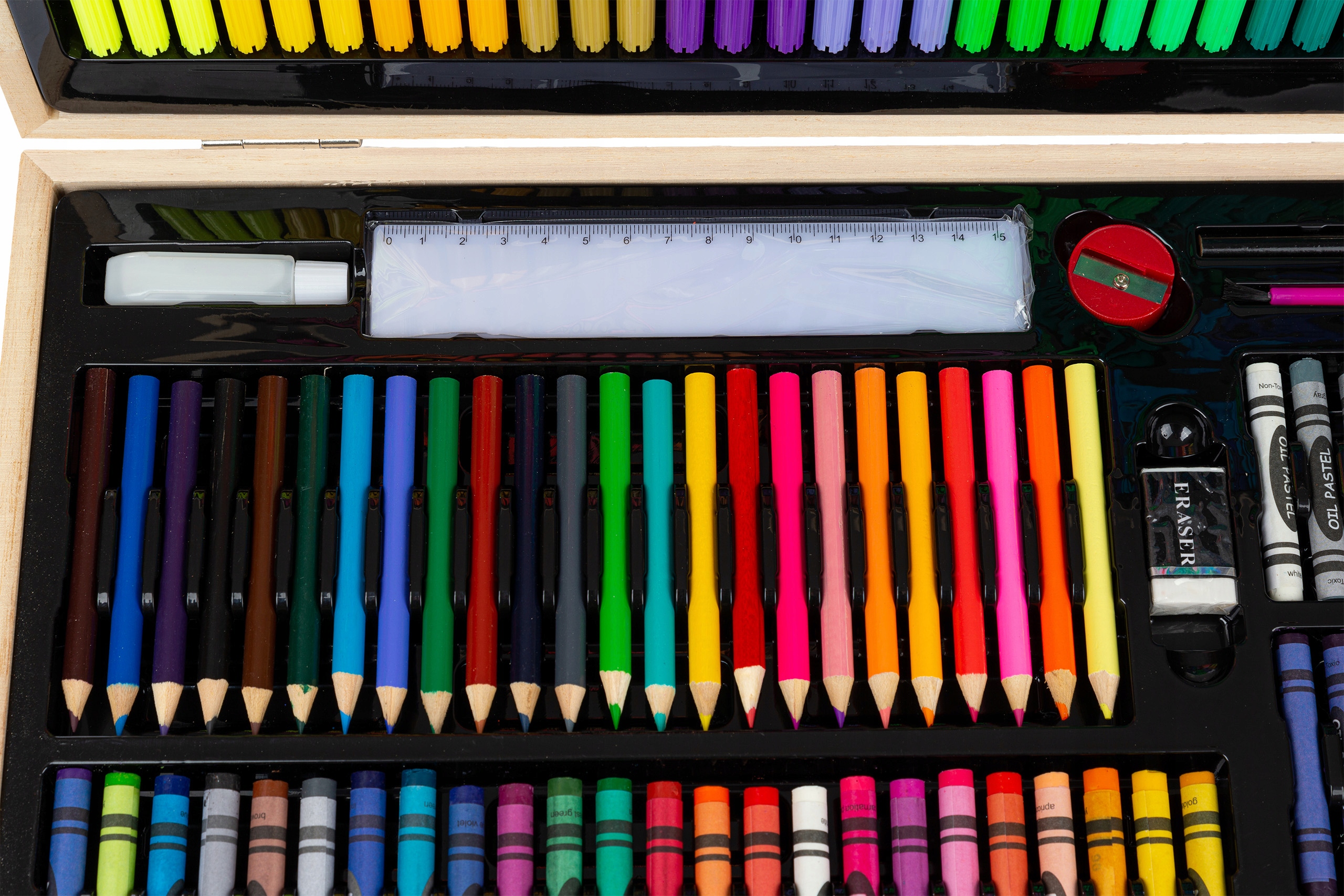 Мега набор для живописи и рисования - отличное приключение для начинающих артистов или более опытных артистов. Набор функционален и состоит из 251 полезных деталей и практического чемодана.