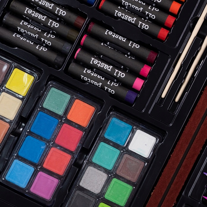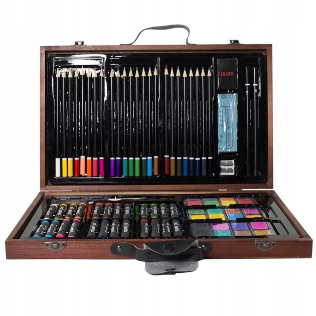 Художественные наборы — это широкий выбор принадлежностей для рисования и рисования, заключенных в эстетичный футляр для переноски. Набор состоит из 79 элементов - множество аксессуаров сделают каждое использование художественного набора идеальным путешествием в мир искусства. Инструменты изготовлены из материалов высочайшего качества и представлены в широкой цветовой гамме, что еще больше облегчит выполнение художественных работ. Качественные аксессуары, входящие в комплект, хорошо покрывают бумагу и очень эффективны, поэтому вы сможете создавать свои работы долгое время.