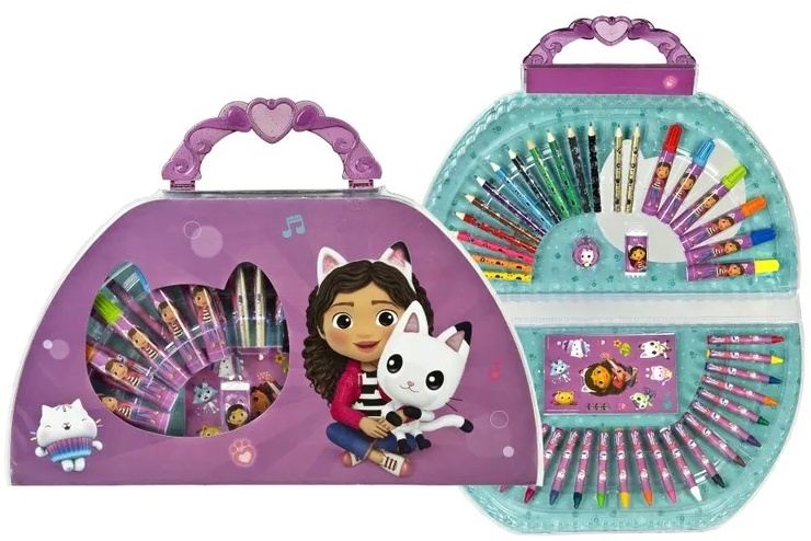 Художественный набор, вдохновленный сказкой Кошачий домик Габи, — идеальное предложение для детей, которые любят рисовать, раскрашивать и создавать свои собственные проекты. Все это заключено в удобный полукруглый чемоданчик с ручкой, который ребенок может удобно брать с собой в детский сад, школу, в путешествие или во время игры дома.