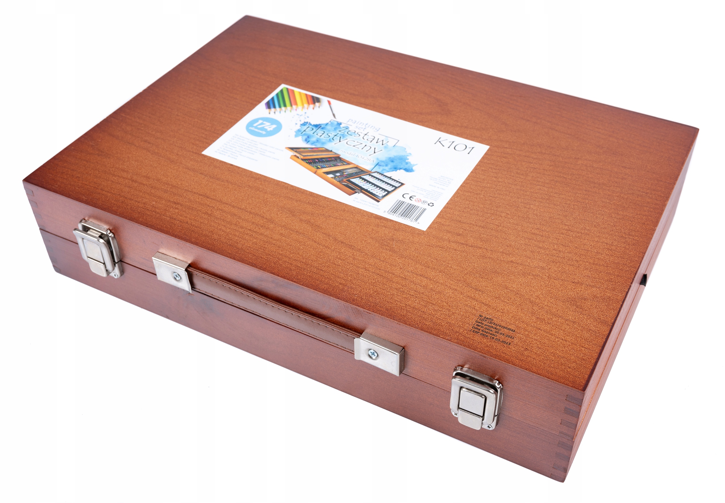 Арт-набор, состоящий из 174 элементов. Качественные аксессуары упакованы в удобный складной деревянный футляр.