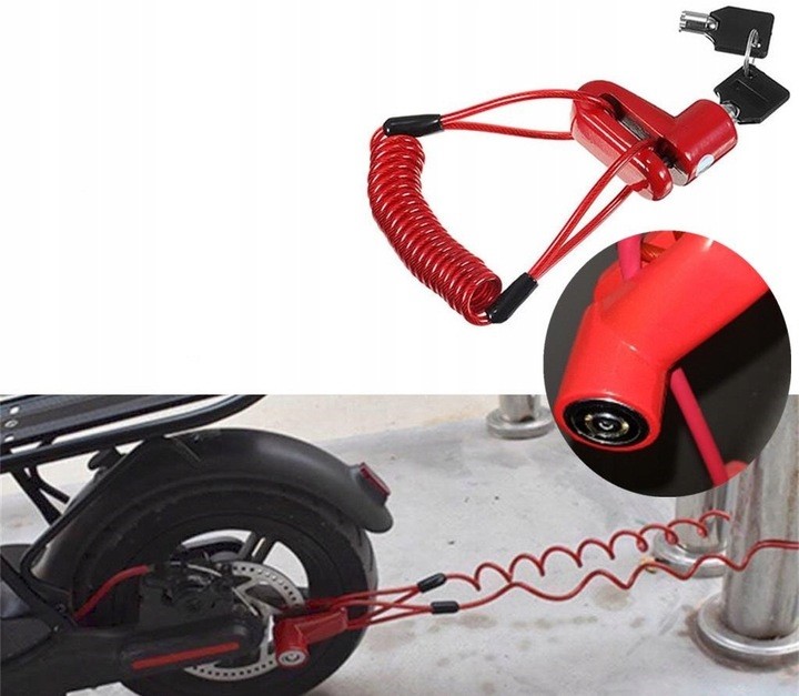 Предлагаемый накладчик -это Perfect защита против atheft для нашего электрического скутера или велосипеда. Блокада позволит нам заблокировать колеса наших двух -шишельных или насасывания в любом месте, используя прочный стальной кабель .