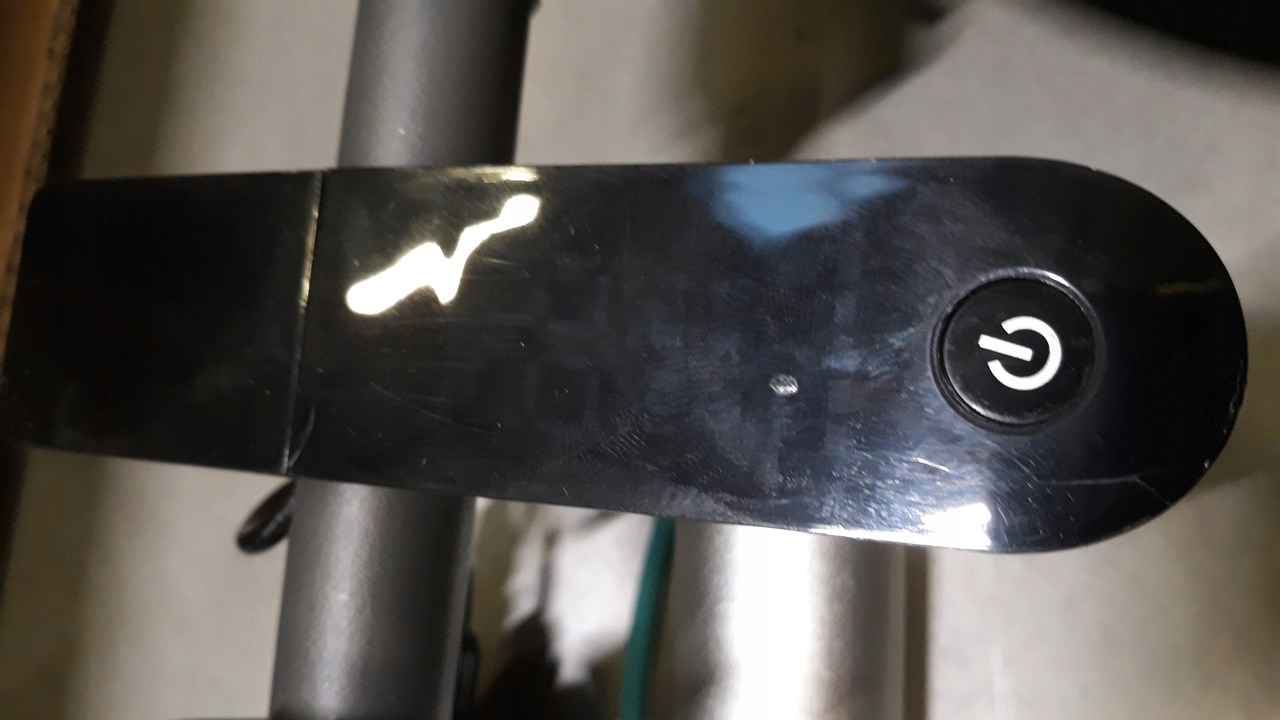 Состояние товара: товар б/у, самокат имеет многочисленные царапины на ручке, крыльях и основании, разбит экран и погнутая шина, мешающая плавному движению самоката, товар не полностью работоспособен
