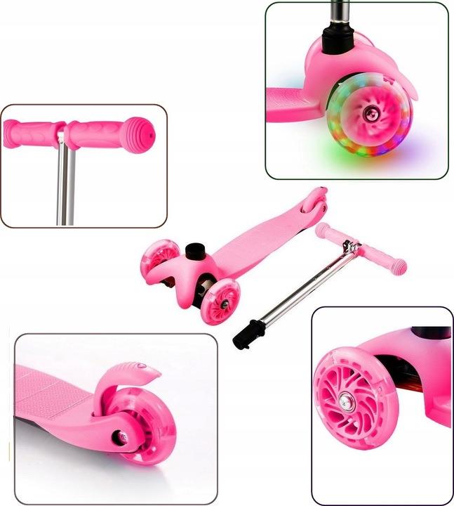 HULAJNOGA SKŁADANA TRÓJKOŁOWA BALANSOWA DLA DZIECI LED RÓŻOWA