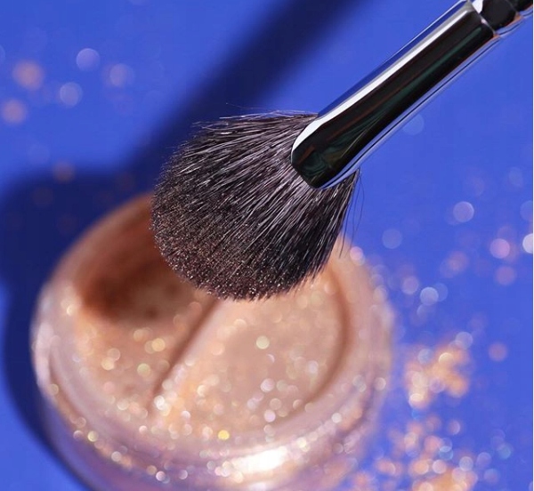 Веерная кисть из смеси козьего и беличьего волоса для нанесения хайлайтера, румян или пудры под глаза.