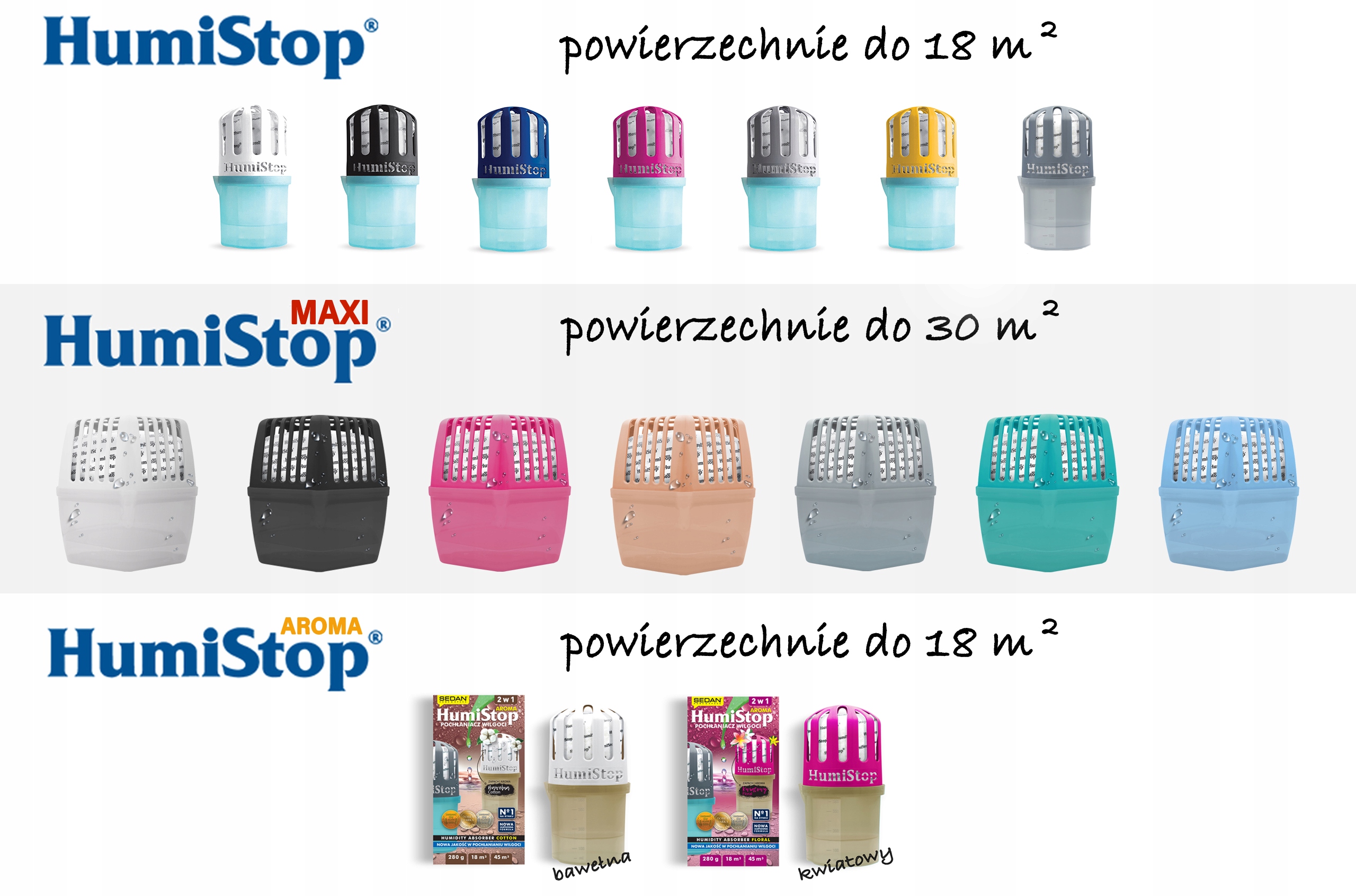 Новые картриджи с ароматизаторами также включают две новые модели устройств со специальной графикой. Поглотитель хлопкового аромата будет доступен в коричневом/белом цвете, а цветочный - в коричневом/розовом. Все вставки весят 280 г, поэтому подходят ко всем стандартным устройствам. Поэтому, если вы уже использовали поглотители Humistop в стандартной версии, вы можете попробовать наши ароматизированные версии без необходимости покупать контейнер.