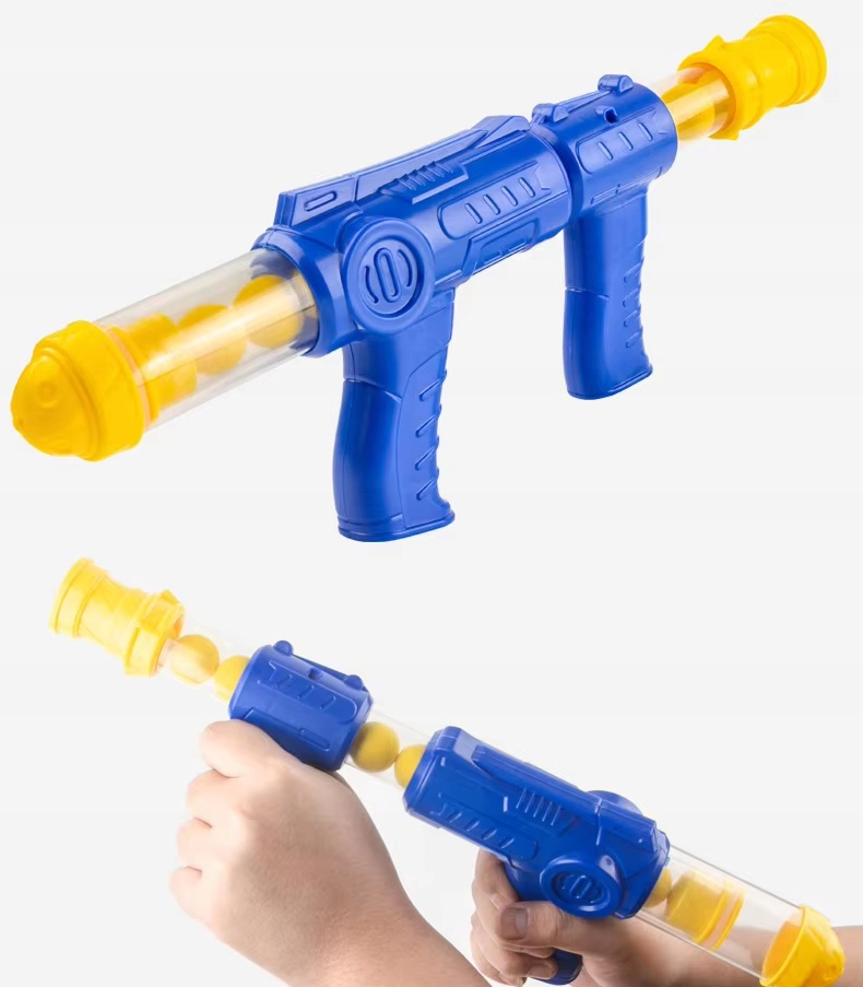 Мячи изготовлены из пенопласта, что обеспечивает максимальную безопасность во время игры. Кроме того, пистолет оснащен пневматическим приводом, что означает, что нет необходимости использовать батарейки или другие источники энергии.