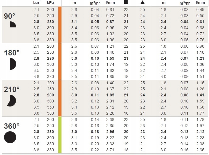 - Более низкое давление позволяет использовать большие расстояния спринклерных линий, чем в случае традиционных форсунок.