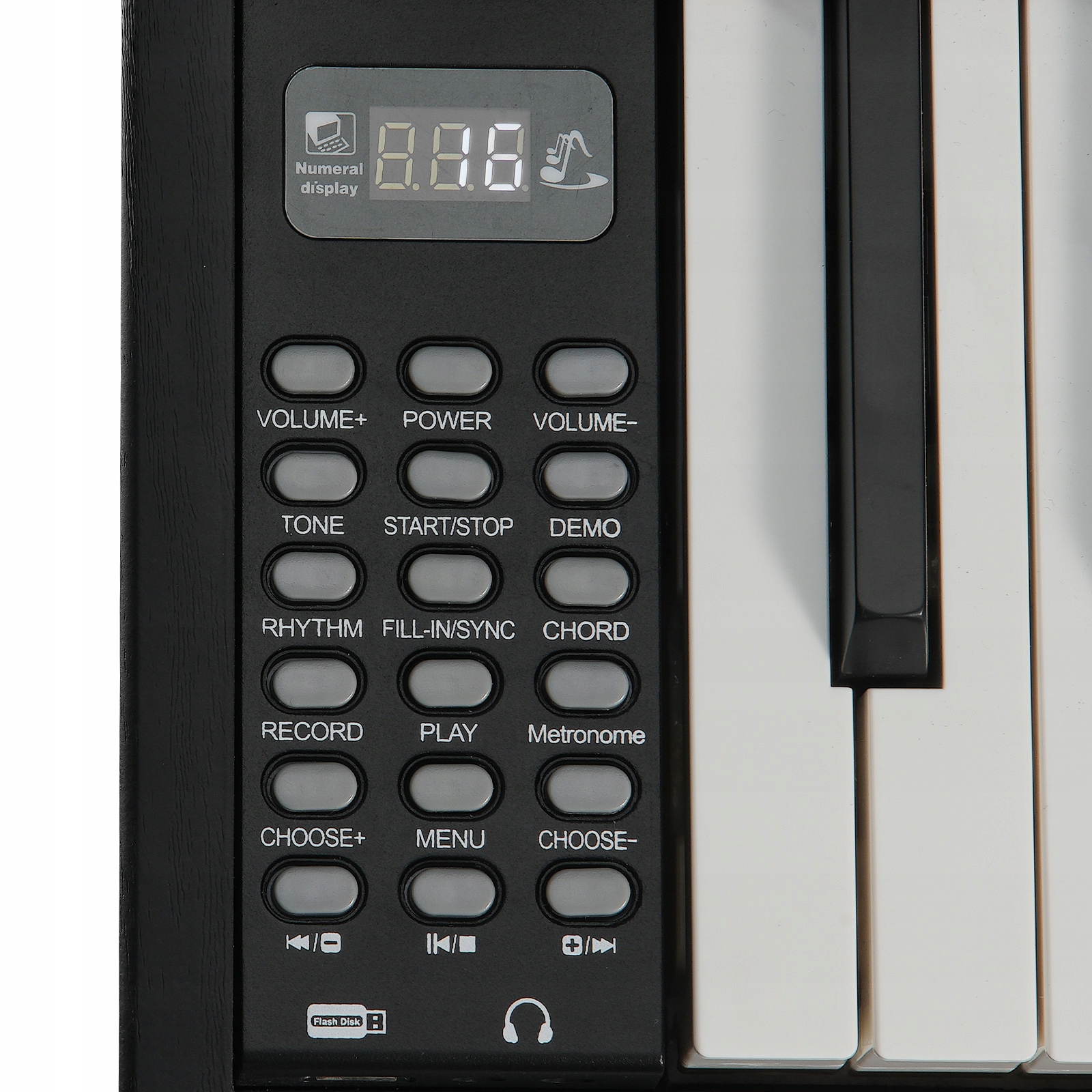 200 Стандартные примечания: Это пианино с взвешенной клавиатурой может играть 200 нот, 200 международных стандартных ритмов и 89 демонстрационных работ. Благодаря клавиатуре, которая также поддерживает широкий спектр инструментов, вы можете обнаружить различные стили и музыкальные виды.