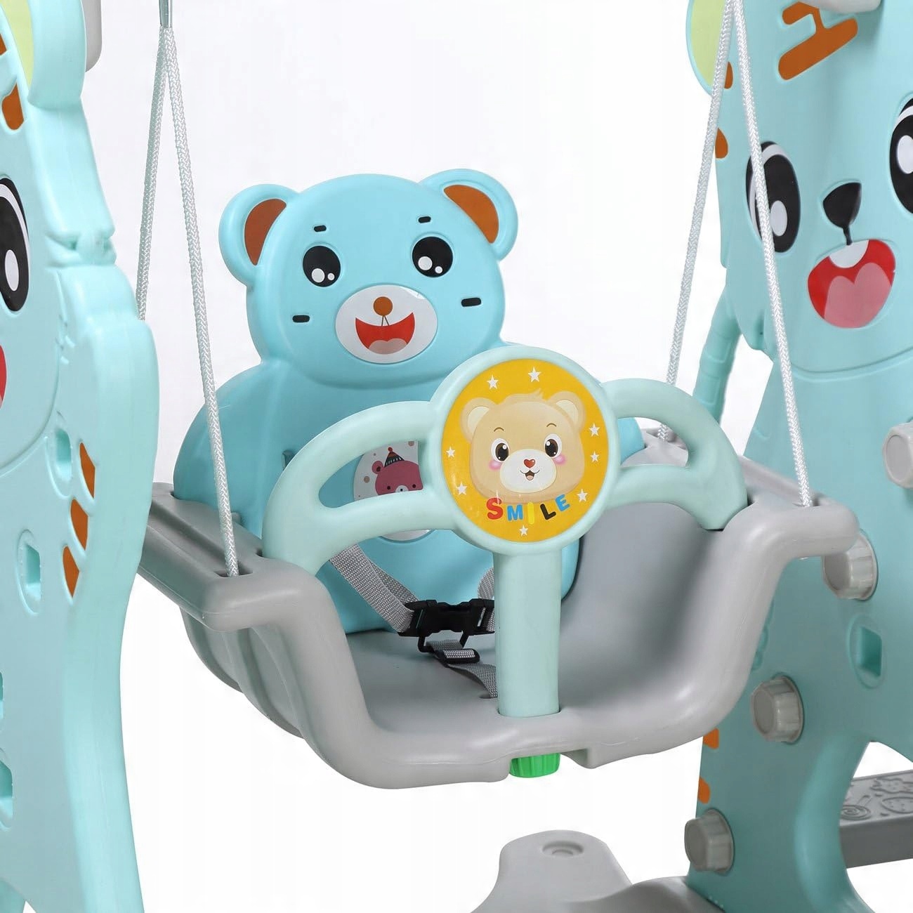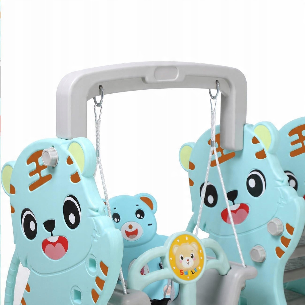 Качели детские, игровая площадка, садовая с горкой, для использования в помещении и на улице, пластик, бирюзовый/серый