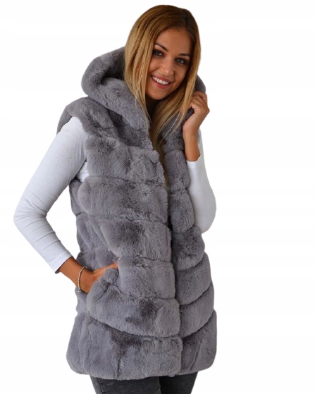 Хутряний ЖИЛЕТ З КАПУШОМ ПРЕМІУМ СІРИЙ