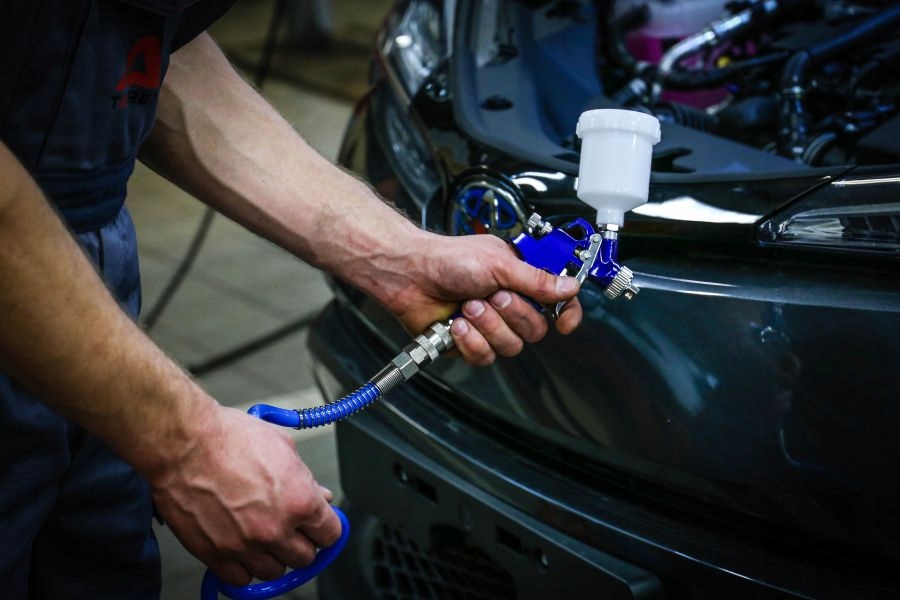 Высококачественный покрасочный пистолет, оснащенный тремя регулировками: воздух, краска и струя. Пистолет оснащен независимым пневматическо-красочным механизмом срабатывания. Благодаря такому решению при легком нажатии на спусковой крючок из сопла выходит сжатый воздух, а затем, при увеличении давления на спусковой крючок, выходит краска. Это существенно влияет на качество покраски.