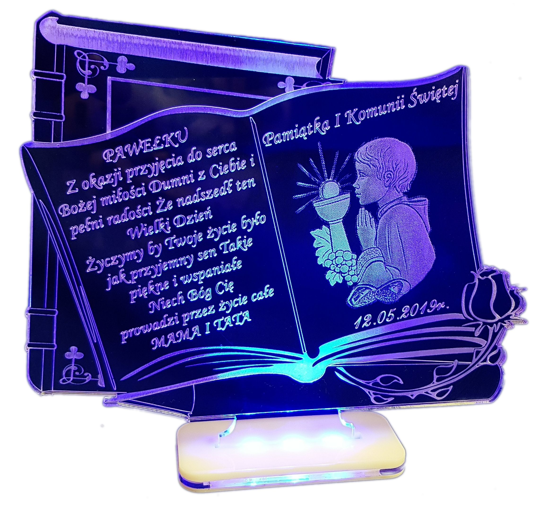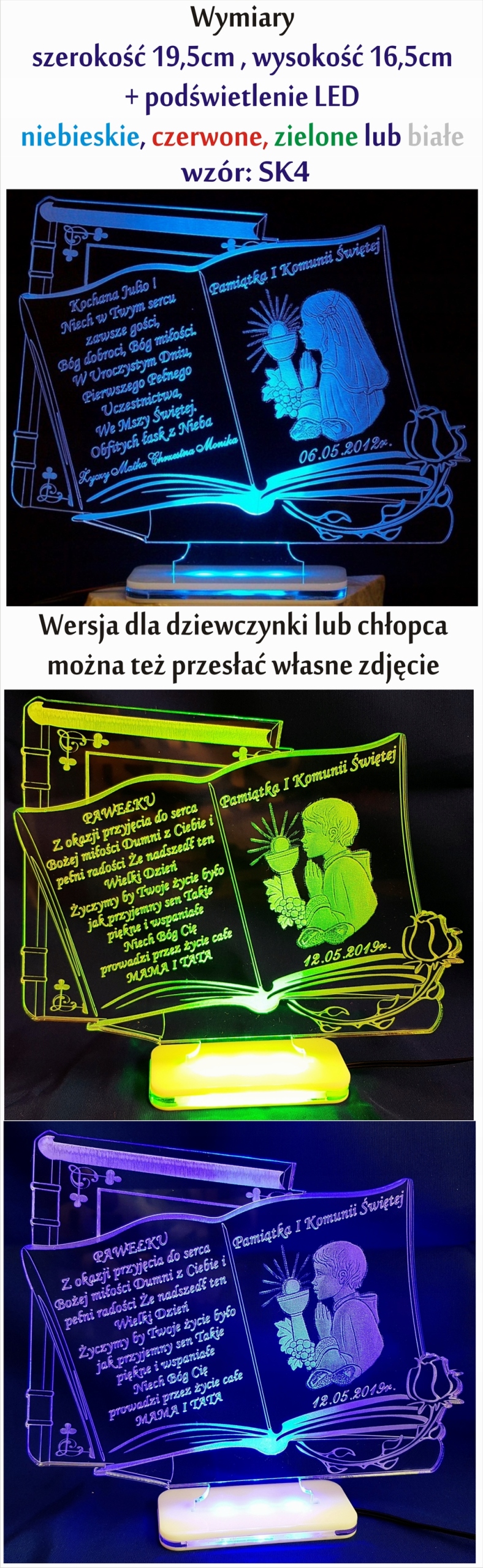 I KOMUNIA ŚWIĘTA PODŚWIETLANA STATUETKA Z FOTO LED
