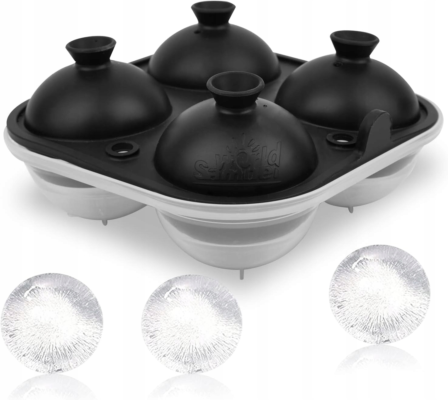 - [4 идеальных шарика]: Благодаря форме кубиков льда вы можете создавать идеальные ледяные шарики диаметром 6,4 см, которые медленно тают и не ухудшают вкус вашего виски или коктейлей.