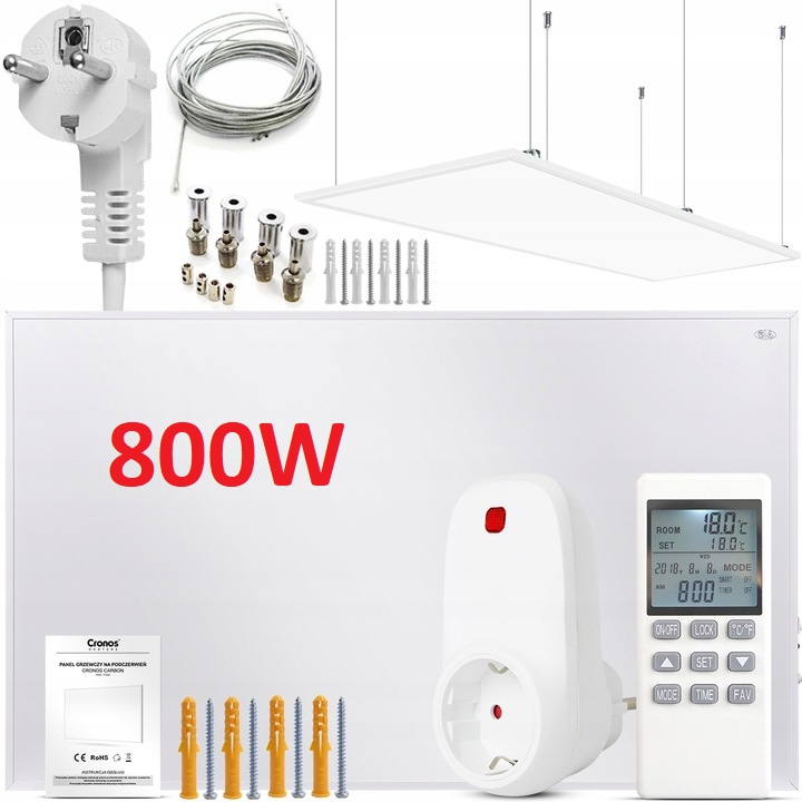 Инфракрасная нагревательная панель (ИК инфракрасный излучатель) Cronos 800W + АКСЕССУАРЫ ДЛЯ ПОТОЛОЧНОГО МОНТАЖА + ТЕРМОСТАТ + ДИСТАНЦИОННОЕ УПРАВЛЕНИЕ + БЕСПЛАТНО